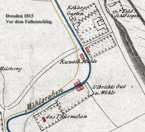 Plan zum Bau einer neuen Pulvermühle “obig dem Kupferhammer” (dem späteren Kanonenbohrwerk in Löbtau) wird von