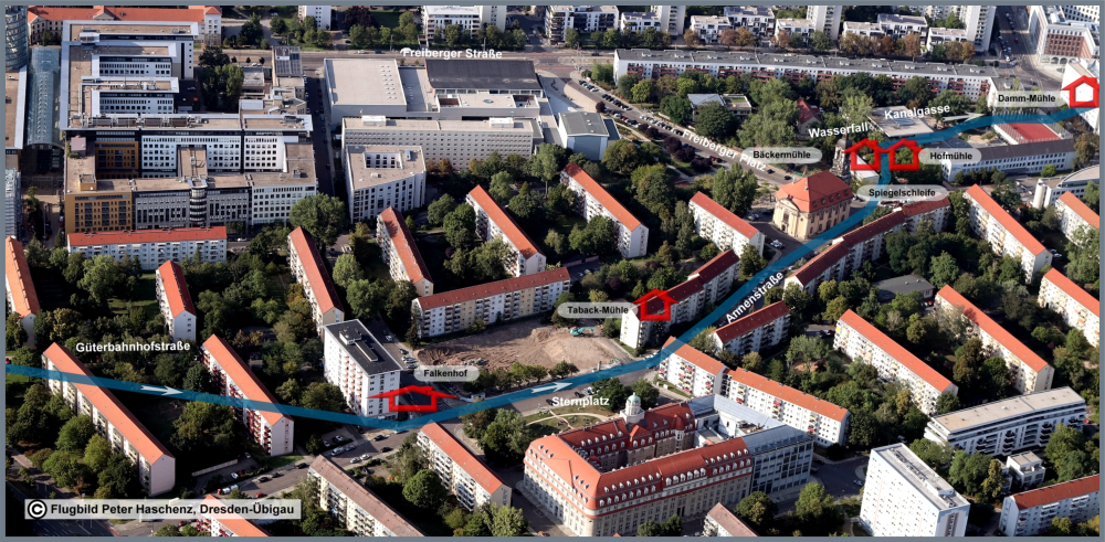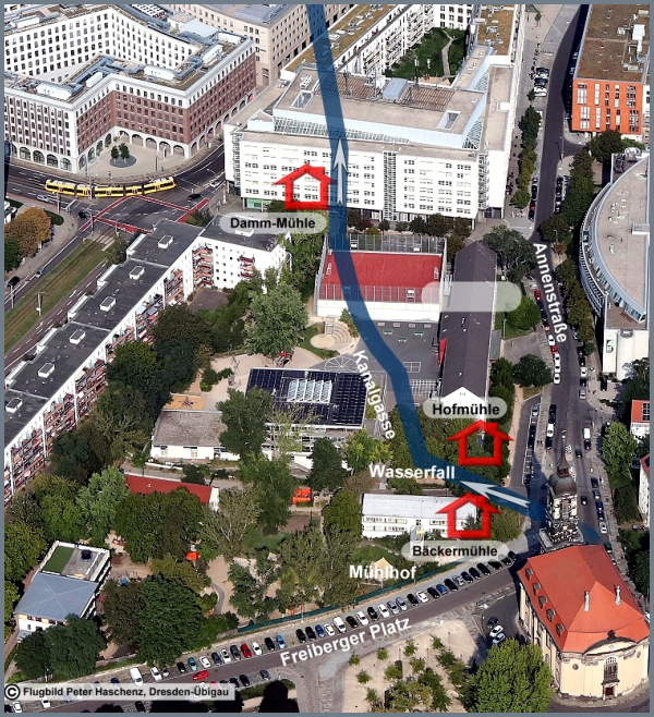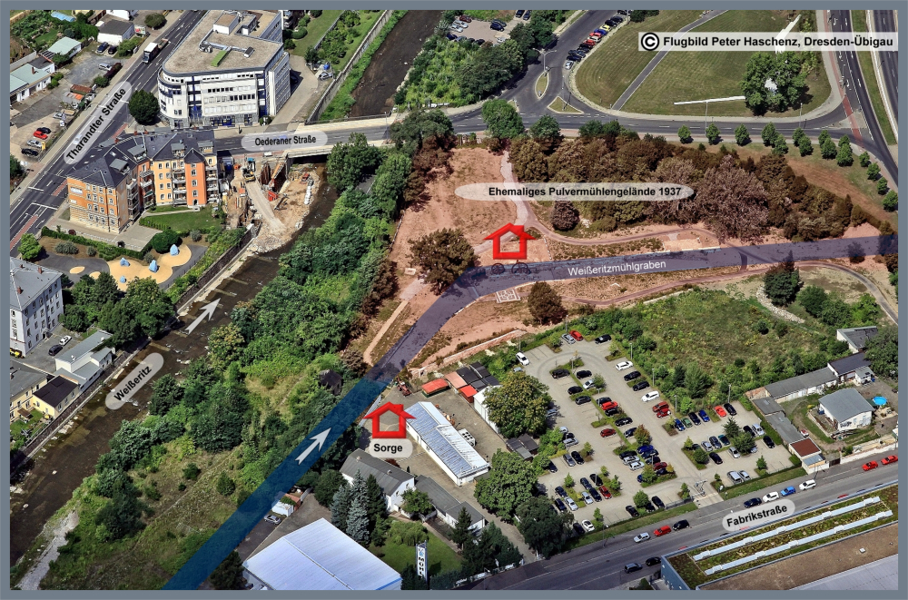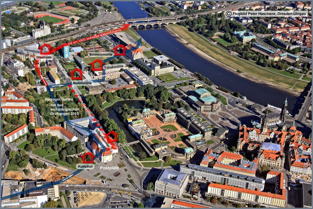 eines alten, toten Weißeritzarmes, im Verlaufe der Jahrhunderte kanalisiert und teilweise in seiner Richtung geändert