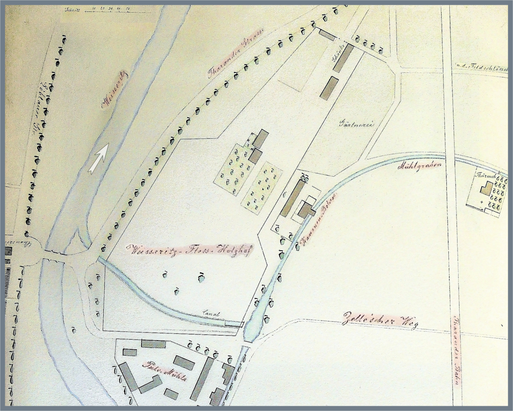 (um) im Zusammenhang mit der Errichtung der Walkmühle in die Weißeritz eingefügt,