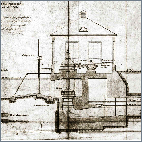 Bedienungslose Wasserkraftanlage in den um 1900 zum Güterbahnhof hin verlegten Weißeritzmühlgraben eingebaut,