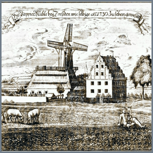 Papiermüller Johann Gottlob Schuchard wird Eigentümer, lässt um 1730 auf das Dach der Mühle eine Windmühle