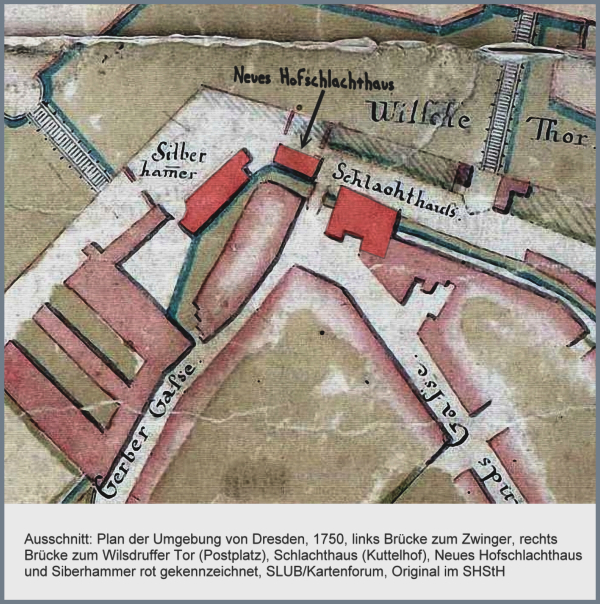 errichtet am Weißeritzmühlgraben als Schlachthaus für die auswärtigen, nicht der Dresdner Innung