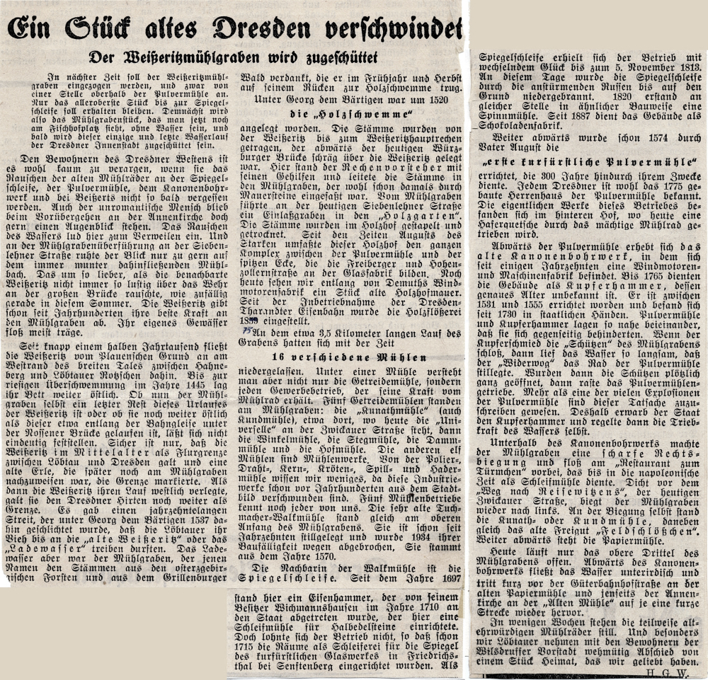 Der Mühlgraben in Zeitungen, Zeitschriften, Büchern und Akten