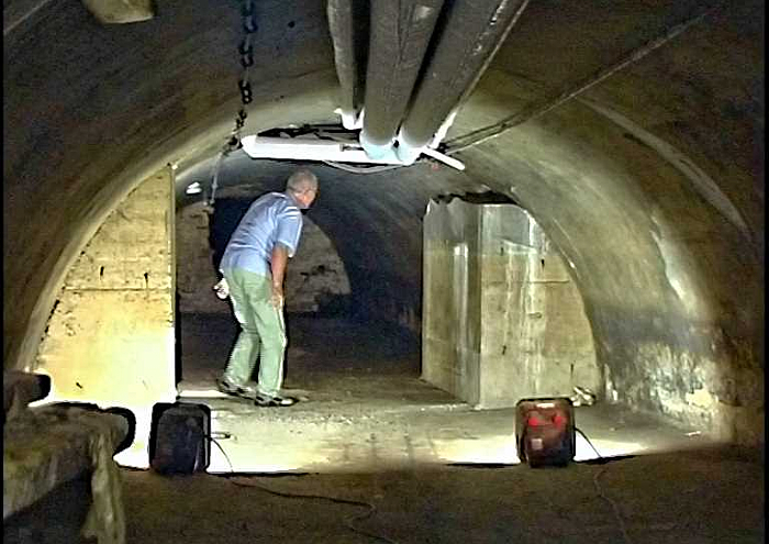 Der kleine Film zeigt das heute noch vor-handene unterirdischen Gewölbe des ehe-maligen Weißeritzmühlgrabens im Gelände der Zwingerbauhütte und der Theaterwerk-stätten an der Ostra-Allee bzw. Packhofstraße, Video aufgenommen 2004 im Auftrag der DREWAG.Siehe auch nebenstehende Handskizze.