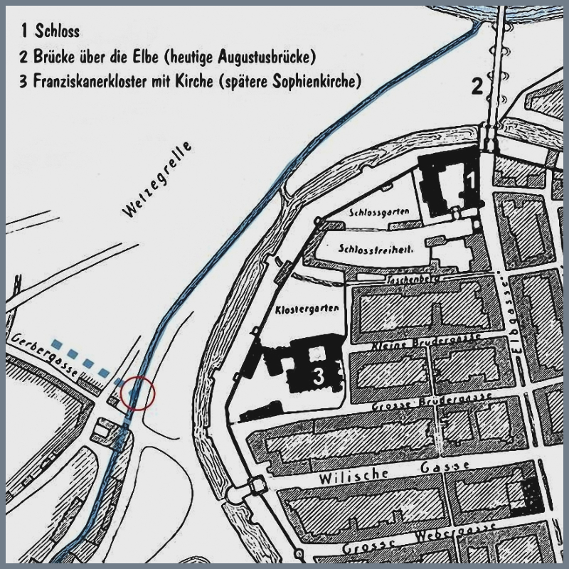 Errichtung vor 1500 als Schlachthaus des Dresdner Hofes am Weißeritzmühlgraben