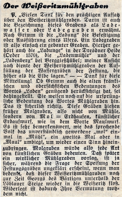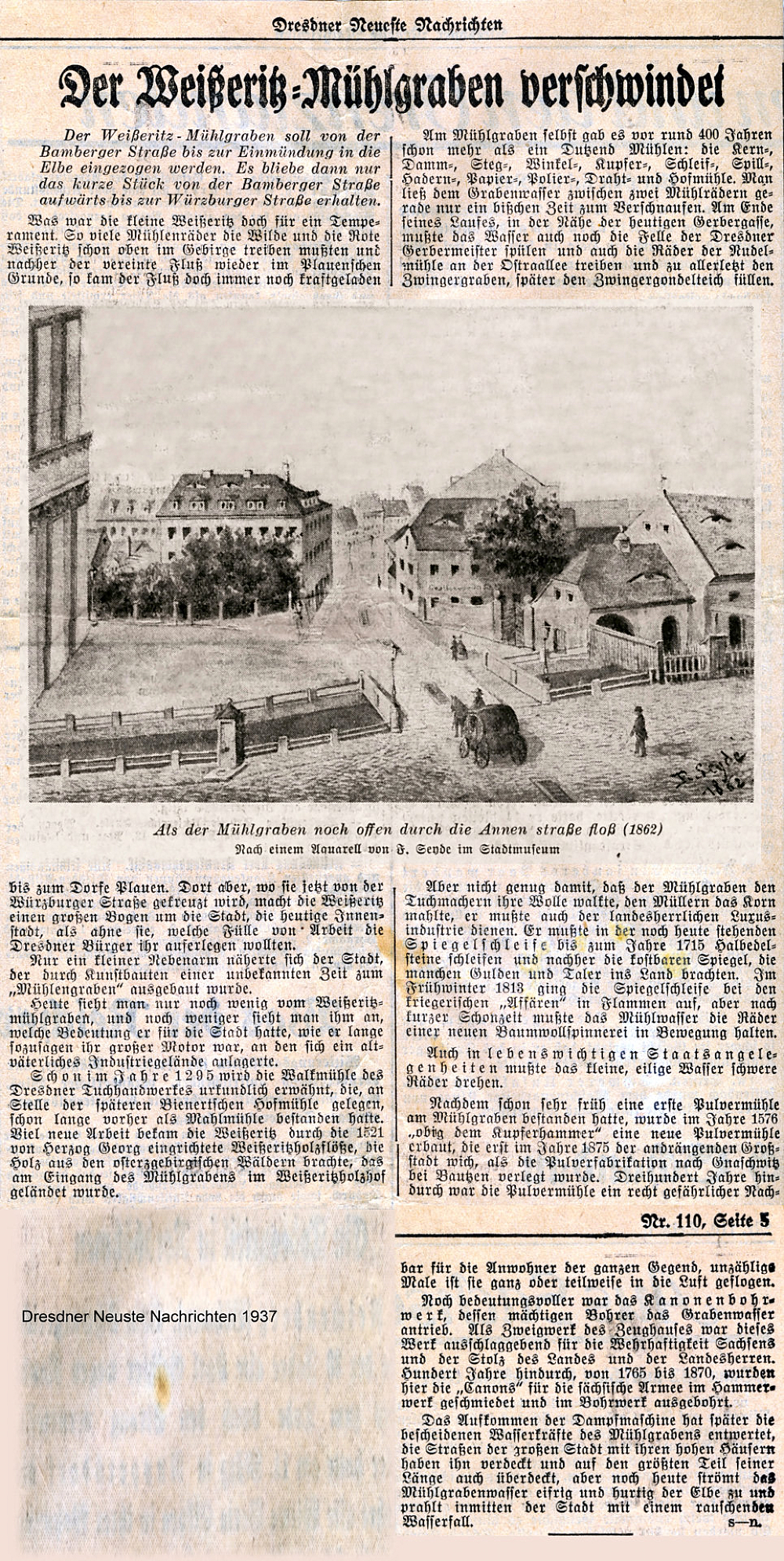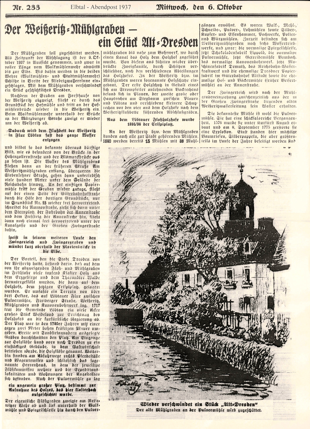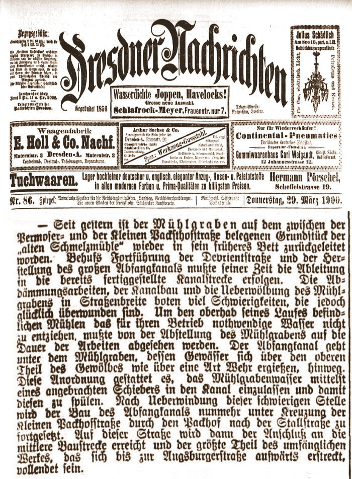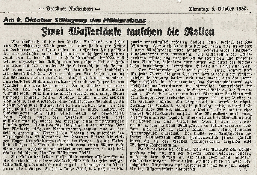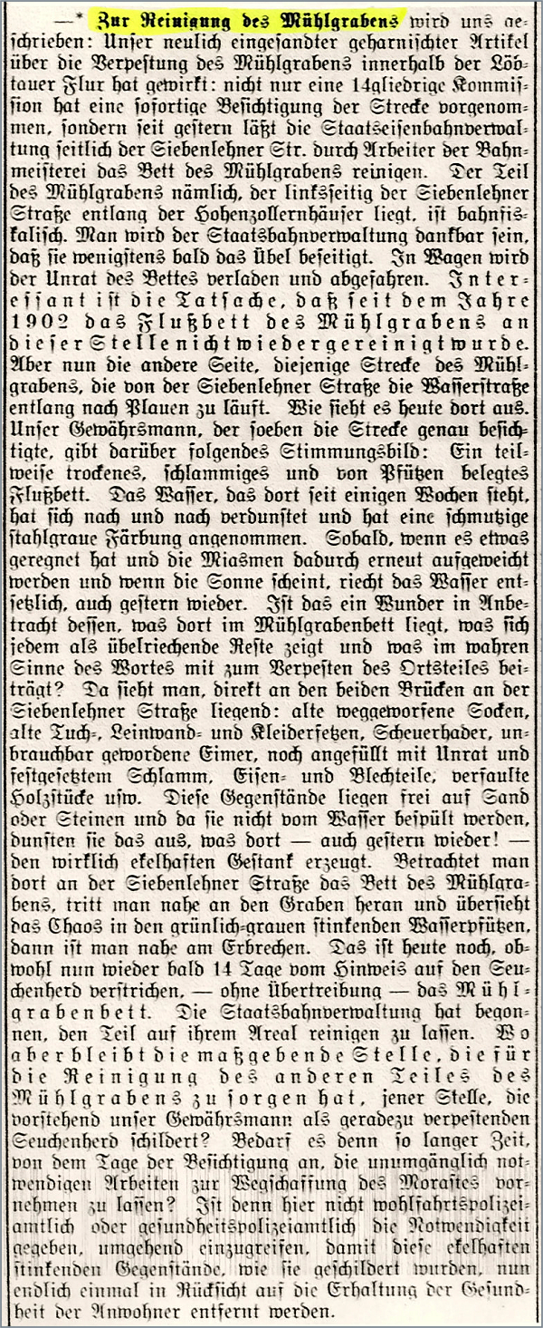 Der Mühlgraben in Zeitungen, Zeitschriften, Büchern und Akten